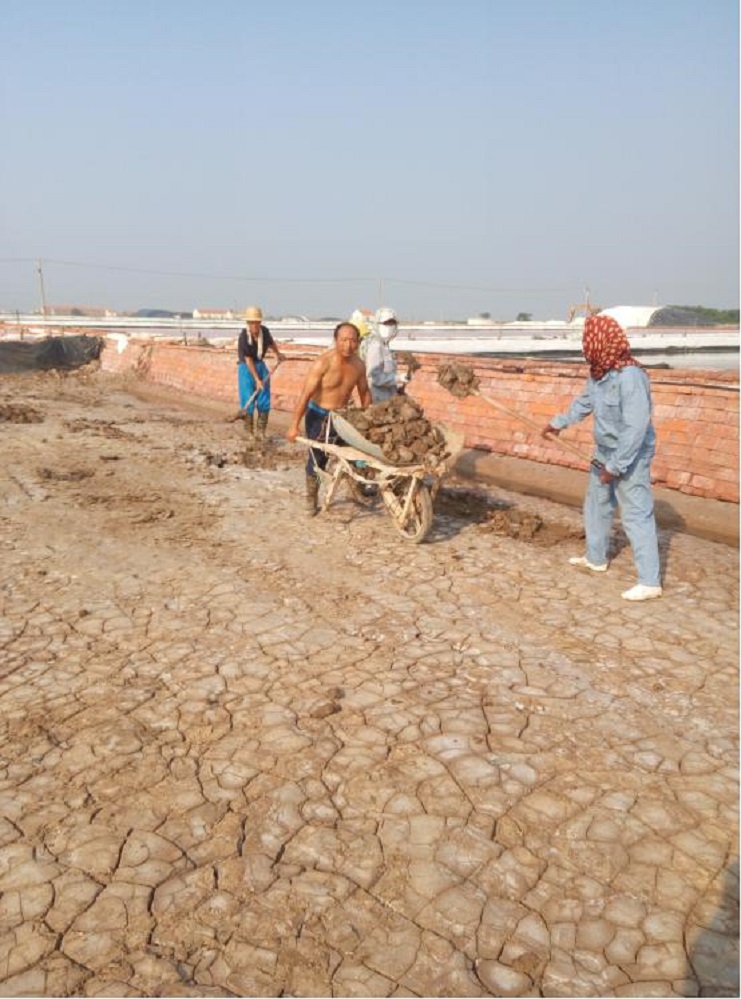 連續(xù)的高溫讓人熱得喘不過氣來,正當(dāng)人們躲在空調(diào)下享受清涼的時候,日曬制鹽埒南制鹽分公司的廣大干群仍堅持奮戰(zhàn)在生產(chǎn)一線,搶抓有利天時組織生產(chǎn)。活碴、除硫、整理池板、做天溝各項工作穩(wěn)步有序推進(jìn)。汗水浸濕了他們忙碌的身影子影。