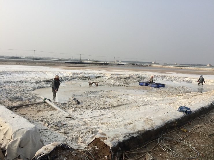 連日來(lái)的晴好天氣讓人心情舒暢,也給鹽業(yè)生產(chǎn)工作提供了有利時(shí)機(jī),新河制鹽分公司全體員工充分發(fā)揮主觀能動(dòng)性,抓緊時(shí)機(jī)做好洼站硫酸鈣清除工作,保證公司冬準(zhǔn)工作順利開(kāi)展,騰出洼站容積,確保除硫和儲(chǔ)鹵需要,截止目前新河分公司已出動(dòng)三臺(tái)硫酸鈣清除機(jī)械,其中一臺(tái)小改小革除鈣機(jī)械在此次清理工作中正進(jìn)行試用和驗(yàn)證。(新河制鹽 邱利民)