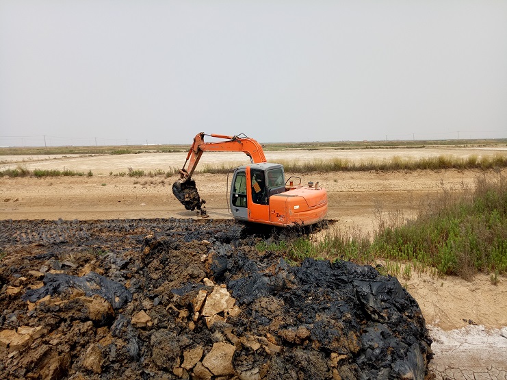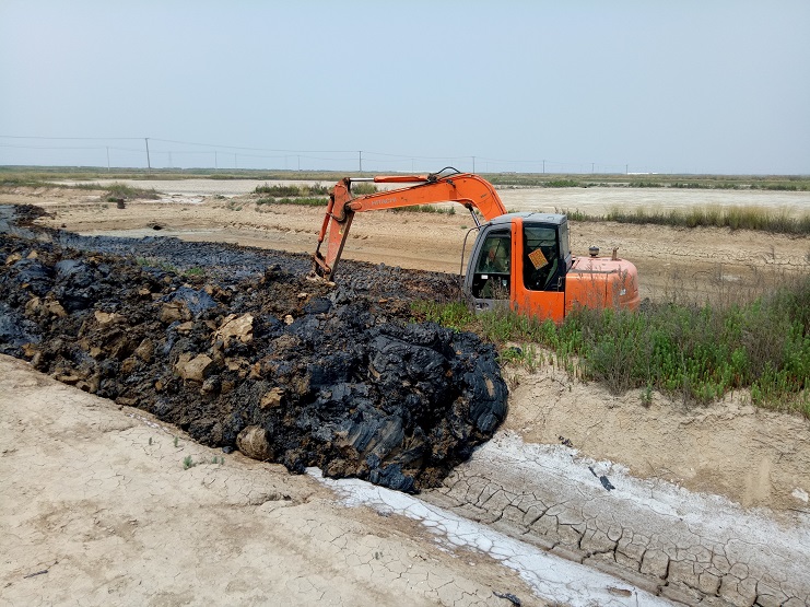 目前,實(shí)業(yè)公司制鹽分公司、海鹽基地一班正在進(jìn)行清淤擴(kuò)容改造工程。 海鹽基地一班班組近日對(duì)土塘進(jìn)行清淤改造。兩臺(tái)挖掘機(jī)頂著連日來(lái)的高溫天氣連續(xù)工作?,F(xiàn)該班班組的三排土塘清淤改造工作基本完成。(實(shí)業(yè)公司)