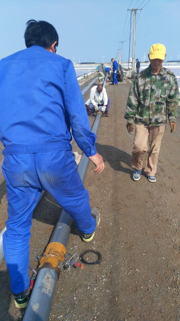 為節(jié)省扒鹽管道拆、裝時(shí)間,提高扒鹽速度,減輕扒鹽人員負(fù)荷,6月11日上午機(jī)電服務(wù)公司新制快接管道在埒南制鹽公司11班進(jìn)行現(xiàn)場實(shí)踐。他們放棄休息日,制作人員全員參與,市勞模王緒華、一星級(jí)員工程洪連、黨員楊軍,他們個(gè)個(gè)不怕臟和累,經(jīng)過一個(gè)多小時(shí)操作,管道安裝結(jié)束,在幾次調(diào)試后,扒鹽機(jī)組運(yùn)行正常。該快速接頭優(yōu)點(diǎn)是安裝、拆解快捷,節(jié)約成本,不足是皮墊易漏鹵。通過此次試運(yùn)行,對不足之處,該公司將繼續(xù)研究,爭取早日投入鹽業(yè)生產(chǎn),創(chuàng)造效益。(機(jī)電服務(wù)公司)