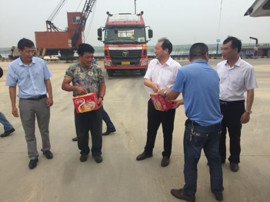 2017年7月18日星期二下午灌西鹽場投資公司領(lǐng)導(dǎo)到宵洋物流有限公司碼頭送清涼看望一線員工!在黨委書記董事長王德志同志、總經(jīng)理李國文同志、工會主席王保平同志的帶領(lǐng)下親自到我宵洋物流有限公司碼頭看望一線員工,送清涼。炎炎夏日,酷暑當(dāng)頭一線員工永遠(yuǎn)沖鋒在前,領(lǐng)導(dǎo)的關(guān)懷更是永不停止!宵洋物流全體員工致謝?。ㄏ笸跞唬?br />