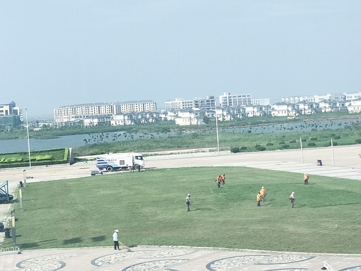 近日來,隨著高溫天氣的延續(xù),也正值樹木生長茂盛的時候,新區(qū)綠化帶內(nèi)的雜草叢生直接影響了美觀。為此,南翼公司于7月18--20日組織綠化人員對雜草進(jìn)行清理。10余名綠化工人背著拴草機(jī),頂著烈日、冒著酷暑在新區(qū)綠化帶內(nèi)清除雜草。雖然轉(zhuǎn)眼間汗水濕透了他們的衣服,但是在她們堅(jiān)持了幾小時的工作,順利完成了此項(xiàng)任務(wù),綠化帶又整齊如一,并受到有關(guān)領(lǐng)導(dǎo)的高度贊揚(yáng)。(王薇)