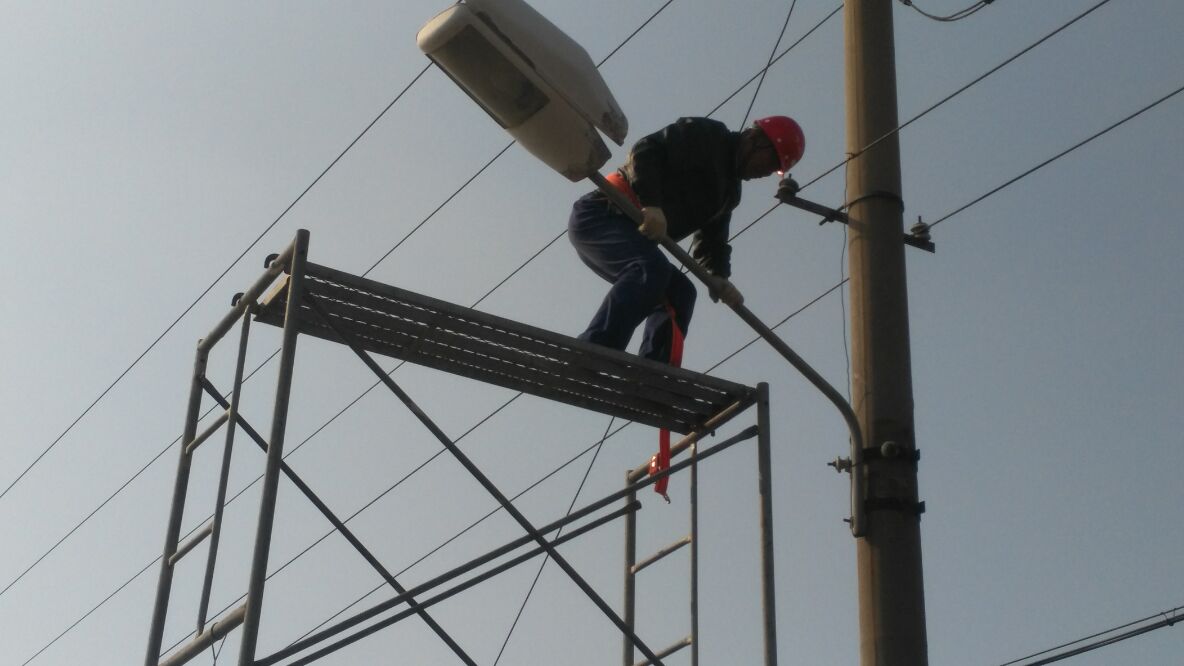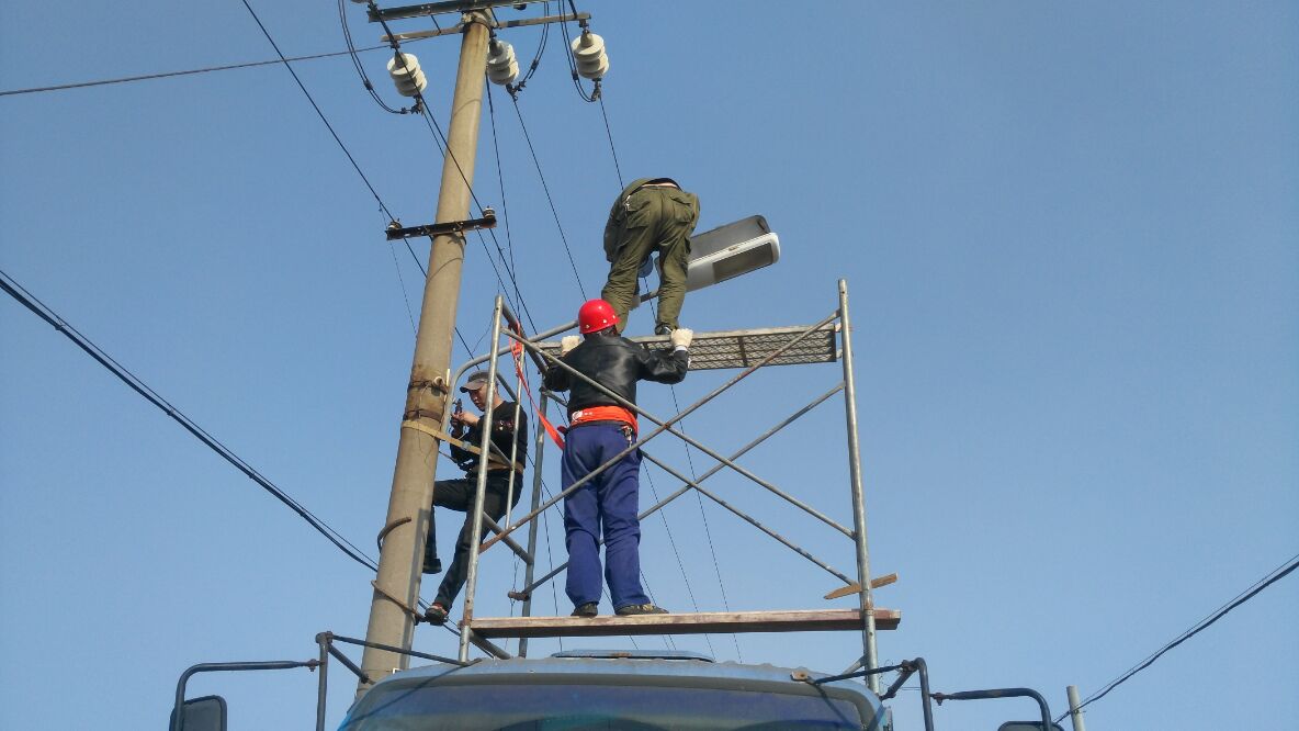 因受大風(fēng)影響,日曬制鹽公司路燈部分支架被吹變向、燈蓋被吹開,存在安全隱患。為不影響職工日常行走,消除隱患,4月17日下午,該公司認真組織專業(yè)人員對路燈進行維修,在維修現(xiàn)場,安全人員現(xiàn)場指揮,操作人員能嚴格執(zhí)行安全操作規(guī)程,經(jīng)過2小時,共修理8盞,接斷線6盞,消除了隱患,為職工上下班提供了保障。(機電)