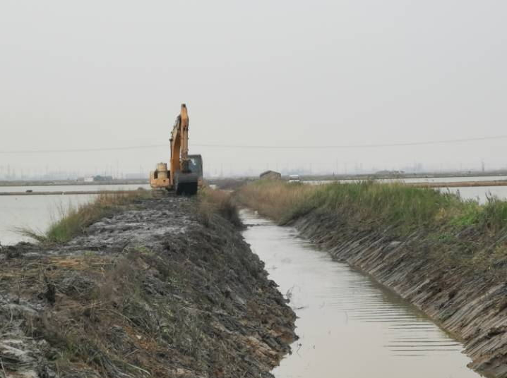 為了保障養(yǎng)殖正常生產(chǎn),營造良好的投資環(huán)境。近期,養(yǎng)殖服務(wù)公司配合投資發(fā)展部對(duì)部分淤塞嚴(yán)重,長滿雜草的海水養(yǎng)殖池塘進(jìn)、排水渠道進(jìn)行疏通。圖為南翼綠化工程公司正在用挖掘機(jī)械理順進(jìn)、排水渠道。(養(yǎng)殖服務(wù))
