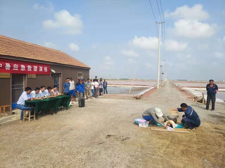 為了貫徹落實灌西投資公司“安全生產(chǎn)月”活動,7月9號在埒南制鹽分公司八班舉行應(yīng)急演練,學(xué)習(xí)中暑急救等安全救援知識。明威公司分管安全領(lǐng)導(dǎo)徐永年與安全員胡繼軍參與演練學(xué)習(xí)。(明威 ?,?