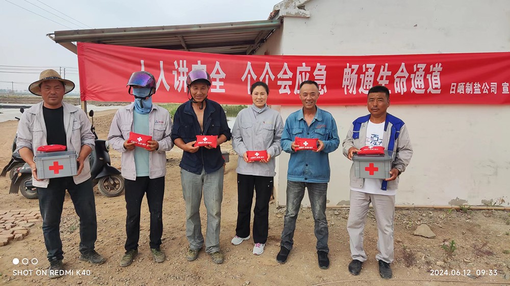 為切實(shí)保障職工在高溫季節(jié)戶外作業(yè)時(shí)的身體健康和安全,同時(shí)做好公司全體職工人人講安全,個(gè)個(gè)會(huì)應(yīng)急的要求。6月12日上午,海水鹽生產(chǎn)基地開展了防暑藥箱及個(gè)人應(yīng)急包發(fā)放活動(dòng)。