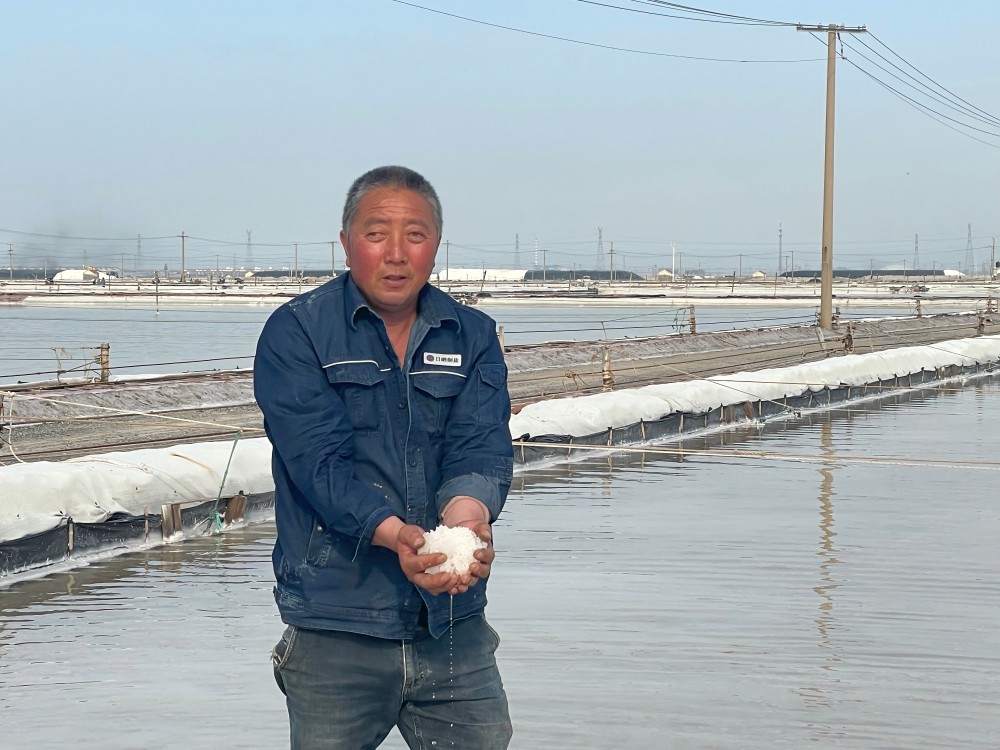 鹽工們的日常,是與陽光、礦鹵和鹽灘的對(duì)話。清晨,他們?cè)缭鐏淼禁}灘,檢查鹵水深度和濃度,各節(jié)制、池埝是否滲漏;下午,頂著烈日觀察礦鹵蒸發(fā)狀態(tài);傍晚,仔細(xì)查看鹽粒結(jié)晶情況。遇到極端天氣,全員出動(dòng),爭(zhēng)分奪秒為鹽堆苫蓋防護(hù)布。“雖然辛苦,但看到像小山一樣的鹽堆,就覺得一切都值了?!蹦贻p的鹽工小陳擦著汗笑道。
