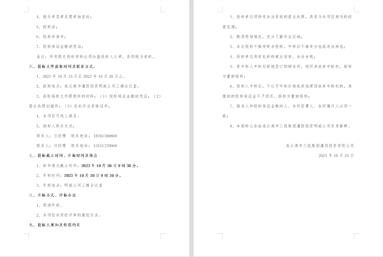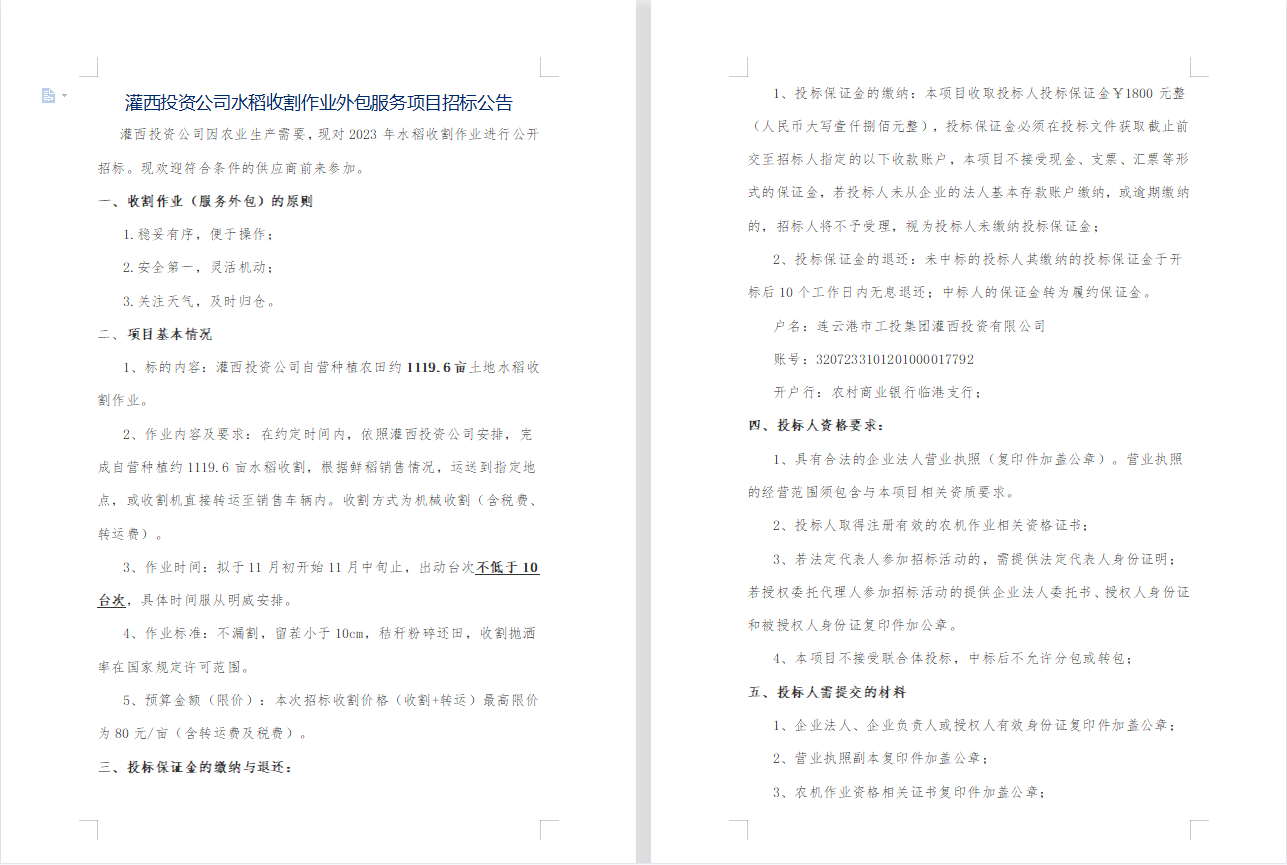 灌西投資公司水稻收割作業(yè)外包服務項目招標公告