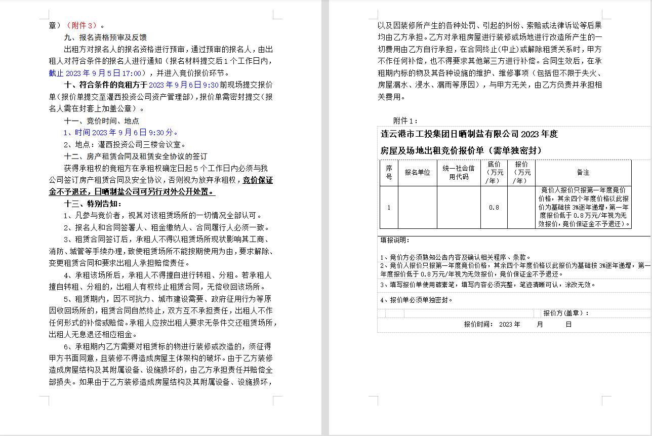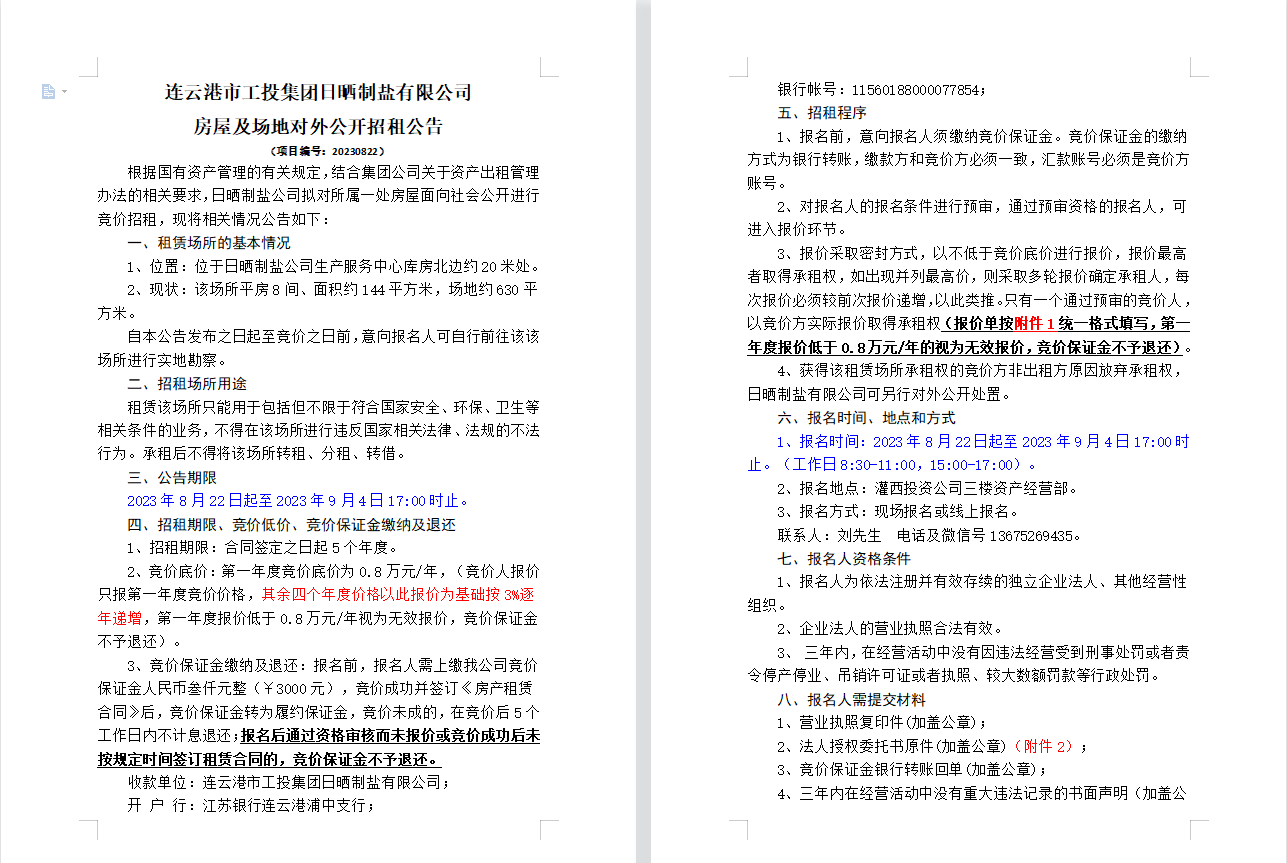 連云港市工投集團(tuán)日曬制鹽有限公司 房屋及場(chǎng)地對(duì)外公開(kāi)招租公告