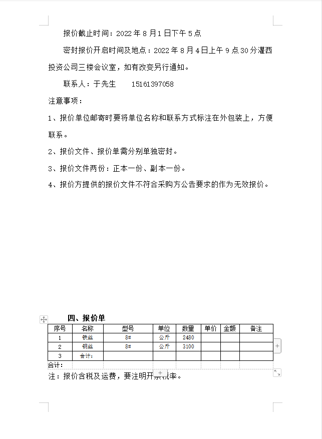 鐵絲、鋼絲采購公告