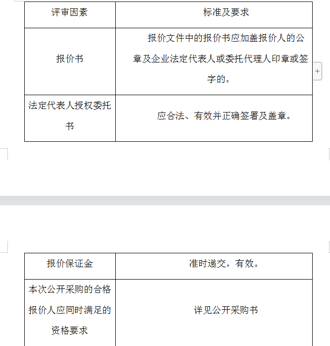 2、評審委員會將根據(jù)以下標準對各報價人進行初步評審,有一項不符合要求的,作否決報價處理,不進入詳細評審。