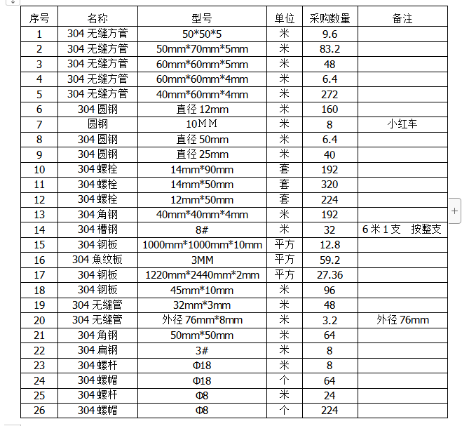 不銹鋼(304)采購(gòu)項(xiàng)目