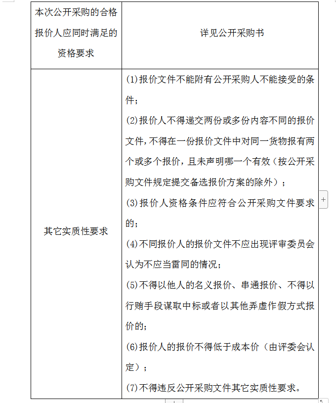 1、初步評(píng)審(符合性審查)是指評(píng)審委員會(huì)審查每個(gè)報(bào)價(jià)人及每一報(bào)價(jià)文件是否對(duì)公開(kāi)采購(gòu)文件提出的所有實(shí)質(zhì)性要求和條件做出響應(yīng),有無(wú)顯著的差異或保留。評(píng)審委員會(huì)將僅對(duì)在實(shí)質(zhì)上響應(yīng)公開(kāi)采購(gòu)文件要求的合格報(bào)價(jià)(有效)文件進(jìn)行評(píng)估和比較。