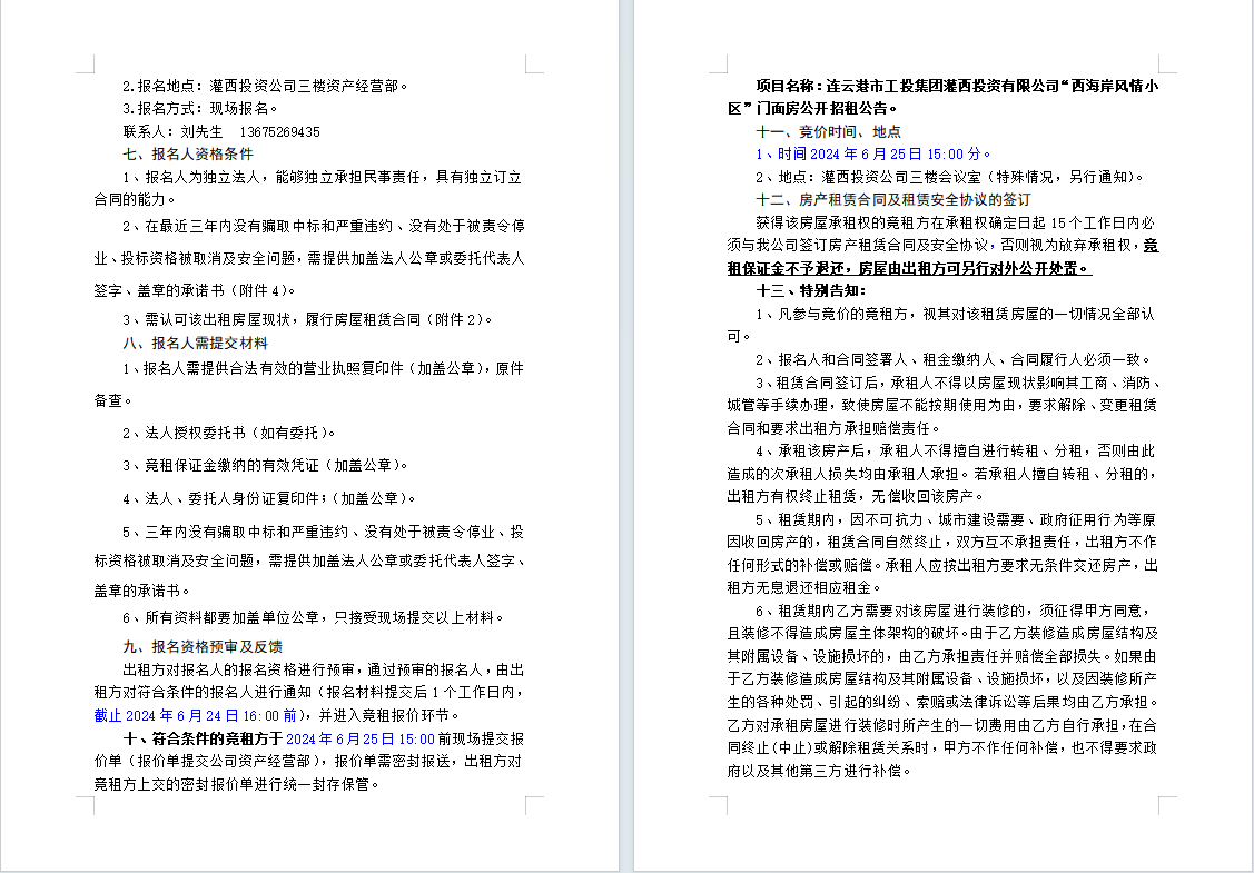 連云港市工投集團灌西投資有限公司“西海岸風情小區(qū)”門面房公開招租公告
