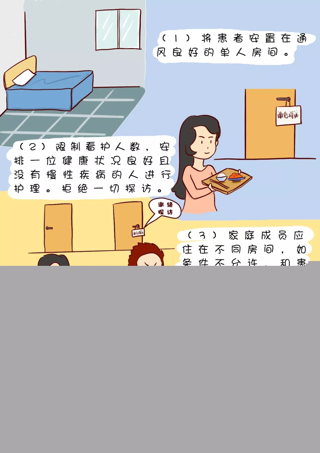 (4)限制患者活動(dòng),患者和家庭成員活動(dòng)共享區(qū)域最小化。確保共享區(qū)域(廚房、浴室等)通風(fēng)良好(開(kāi)窗)。