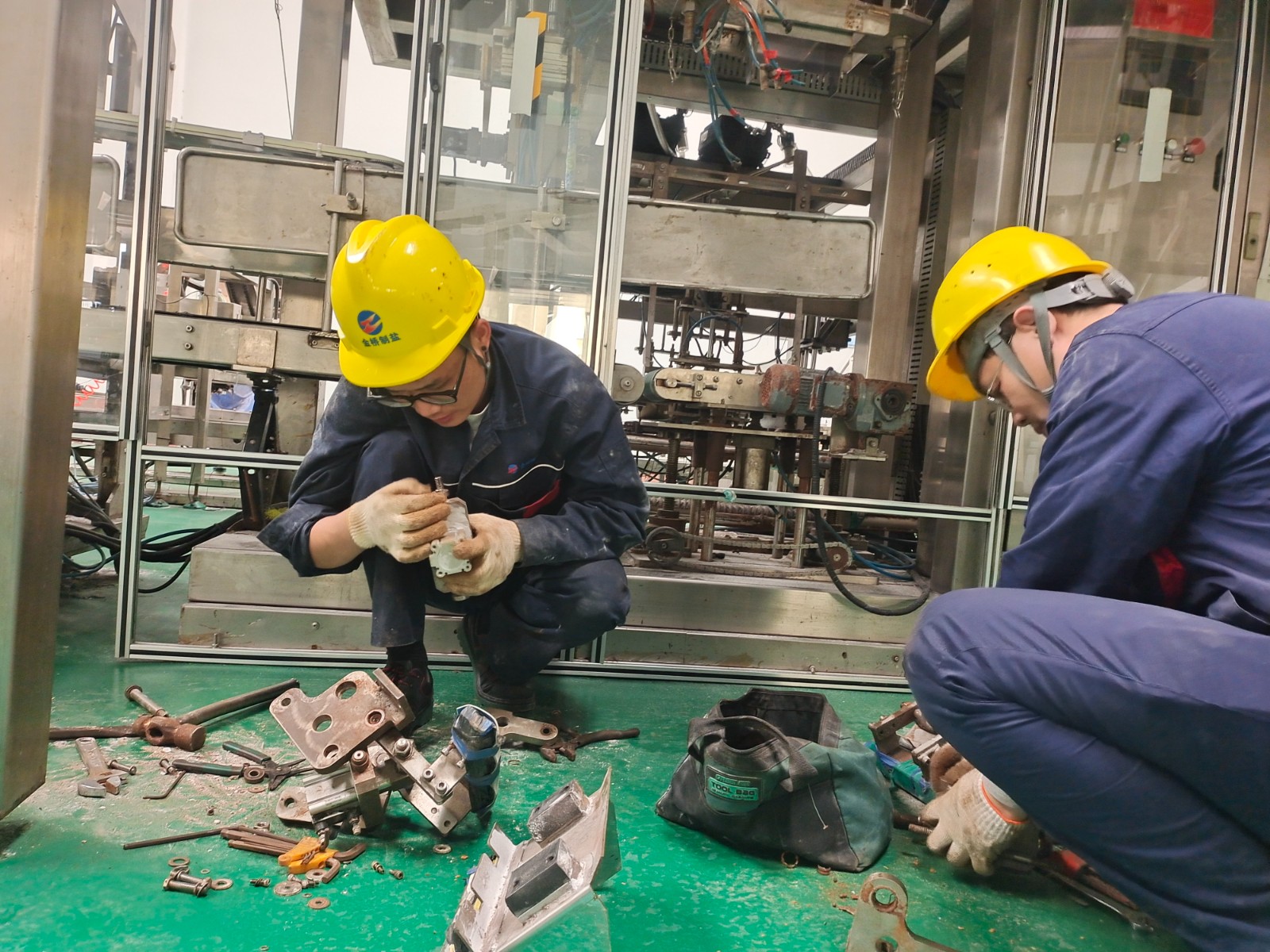 包裝鹽車間停產(chǎn)期間,為避免車間設備在后期生產(chǎn)時出現(xiàn)問題,王以知帶隊對設備進行維修保養(yǎng)。經(jīng)過分工,陳韓和王睿對裝袋機夾袋機構(gòu)更換磨損軸承;趙新超對裝箱機伸縮頭導軌進行調(diào)整維護;王東海和秦榆旺對爬坡皮帶機檔條脫落的進行加固;最后,對電纜溝蓋板除銹上漆,使車間環(huán)境更加美觀整潔。(李竹垚)