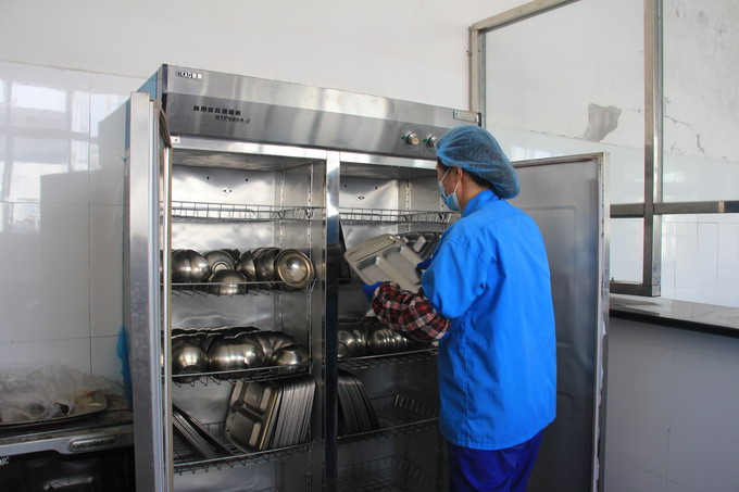 加強(qiáng)職工就餐管理,每天對餐具統(tǒng)一消毒