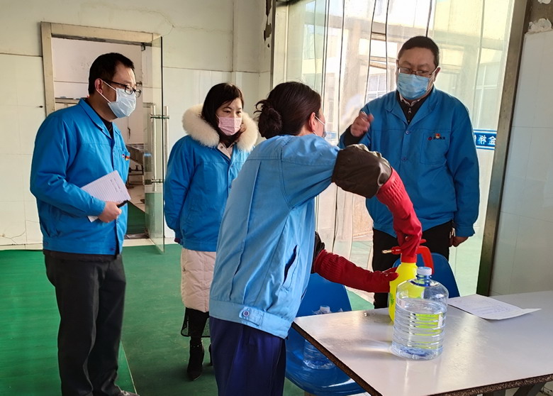 復(fù)工生產(chǎn)后,對進(jìn)廠職工進(jìn)行體溫測量,確保復(fù)工職工體溫低于37.3℃;要求所有進(jìn)廠職工必須佩戴口罩,防止交叉感染;統(tǒng)籌安排職工實行分區(qū)域、分時段就餐;每天對廠區(qū)辦公樓、車間、門衛(wèi)室、食堂等區(qū)域進(jìn)行消毒處理2次,充分做好廠區(qū)衛(wèi)生消毒工作。(金宣)