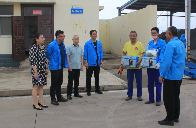 6月24日,我公司工會開展夏季“送清涼”活動,黨委副書記、工會主席曹開明、副總經(jīng)理張學峰和田磊一行,為高溫下的一線職工送去了綠豆、白糖、飲料、茶葉等防暑降溫品。