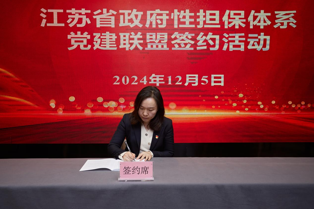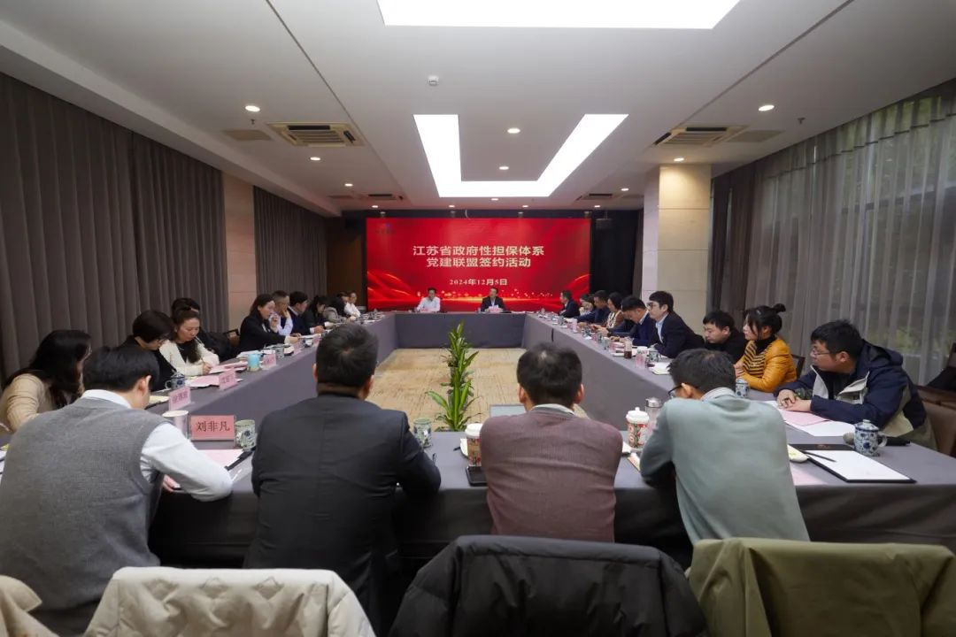 為深入貫徹落實黨的二十大和二十屆二中全會、三中全會精神,以高質(zhì)量黨建引領(lǐng)我省政府性擔(dān)保體系高質(zhì)量發(fā)展,推動黨建工作與業(yè)務(wù)工作互融互促,2024年12月5日,江蘇省融資再擔(dān)保有限責(zé)任公司在南通市發(fā)起成立我省政府性擔(dān)保體系黨建聯(lián)盟,首批邀請全省13個設(shè)區(qū)市的14家重點政府性擔(dān)保機(jī)構(gòu)集中簽約。