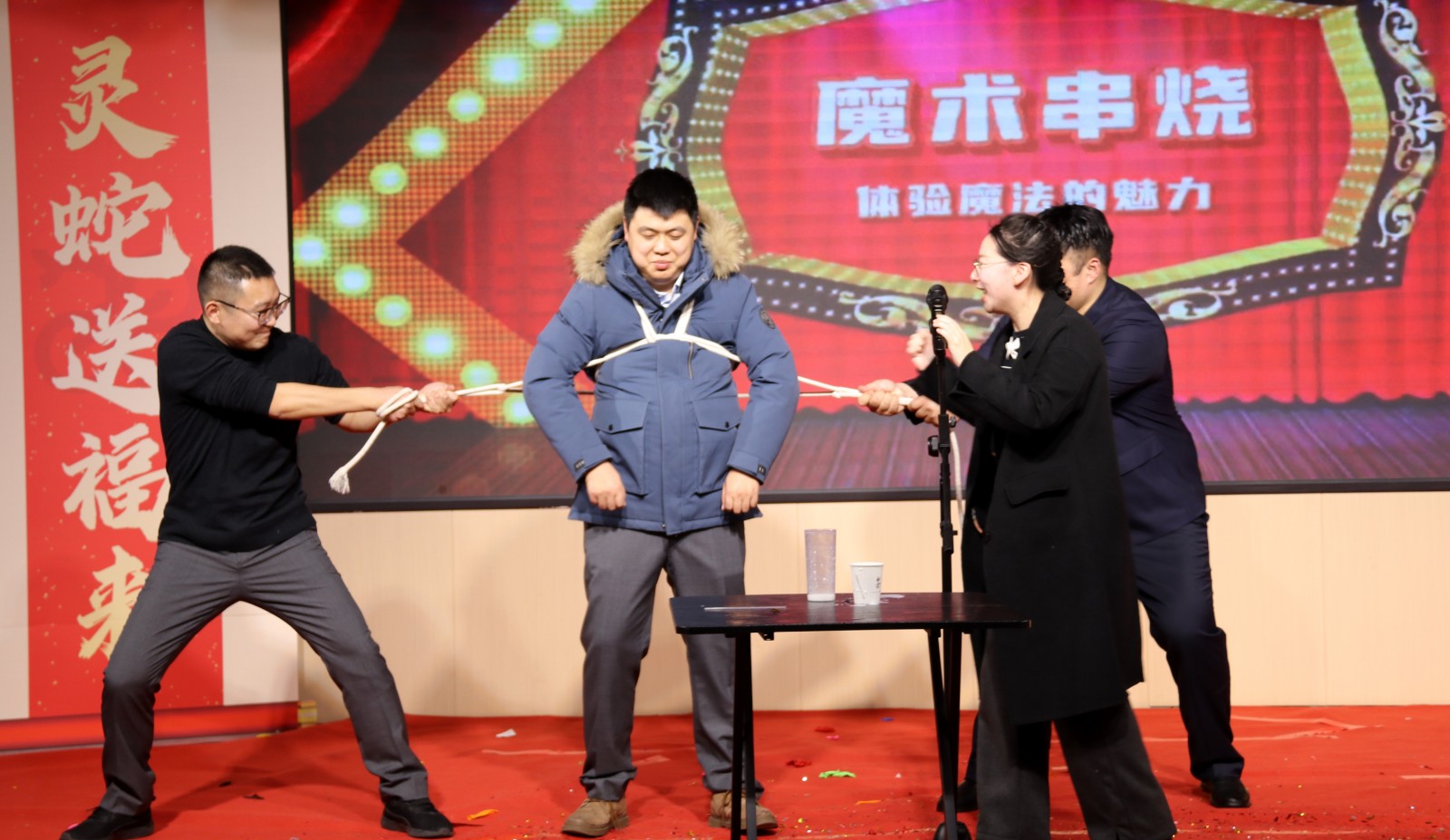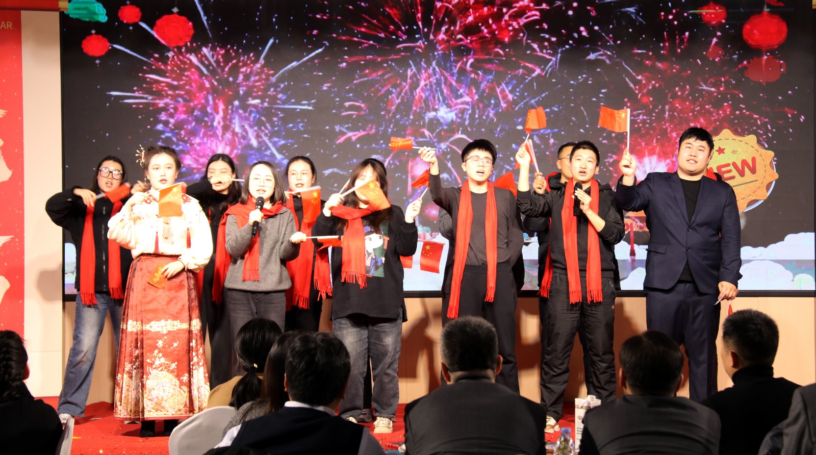 下午15點(diǎn),備受期待的“金蛇獻(xiàn)瑞 迎春共進(jìn)”辭舊迎新聯(lián)歡會(huì)在倒計(jì)時(shí)中如期舉行。聯(lián)歡會(huì)在開場(chǎng)舞《福歲賀新程》中拉開序幕,演員們身著喜慶的服裝,以優(yōu)美的舞姿為觀眾呈現(xiàn)了一場(chǎng)視覺盛宴。