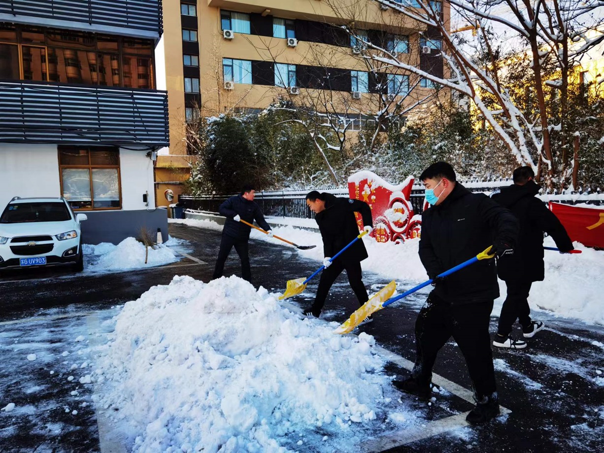 搶干會干巧勁足。“這塊用雪鏟推就行”“那邊不需要掃,直接撒融雪劑”“換這個,更省力”,掃雪現(xiàn)場,大家齊心協(xié)力,組織有序,紛紛施展出自己的“巧勁”。有的員工用鐵鍬鏟雪,有的用掃帚清掃,還有的負(fù)責(zé)運(yùn)輸積雪。一時間,院內(nèi)響起“叮叮當(dāng)當(dāng)”了鏟雪聲、掃雪聲,匯成了一首團(tuán)結(jié)協(xié)作、搶干會干的的贊歌。