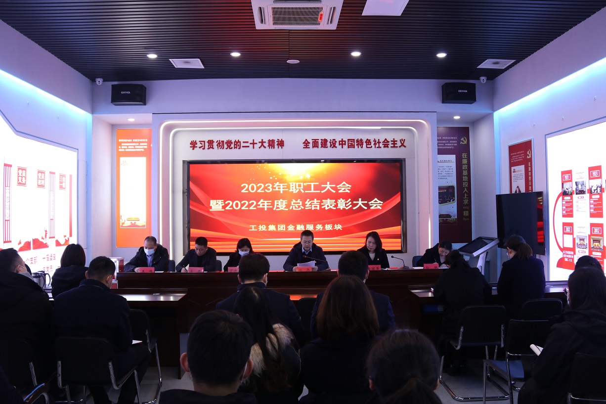 2月8日上午,工投金融服務板塊隆重召開2023年職工大會暨2022年度總結(jié)表彰大會,全體在崗員工參加大會。黨支部書記、董事長徐兵主持會議。