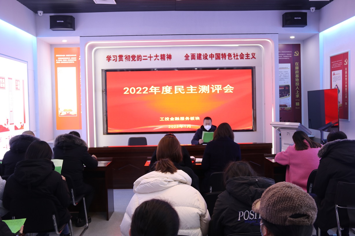 1月16日上午,金融板塊在五樓會(huì)議室召開(kāi)2022年度民主測(cè)評(píng)會(huì),支部書(shū)記、董事長(zhǎng)徐兵主持會(huì)議。