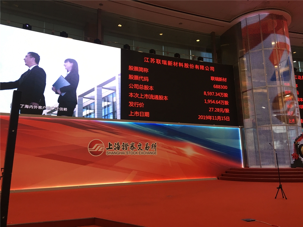 | 11月15日上午9時(shí)30分,工投集團(tuán)產(chǎn)業(yè)基金投資企業(yè)——江蘇聯(lián)瑞新材料股份有限公司(以下簡(jiǎn)稱(chēng)“聯(lián)瑞新材料”)首次公開(kāi)發(fā)行A股上市儀式于上海證券交易所舉行。集團(tuán)公司黨委書(shū)記、董事長(zhǎng)楊龍,資產(chǎn)管理公司有關(guān)人員受邀出席儀式。