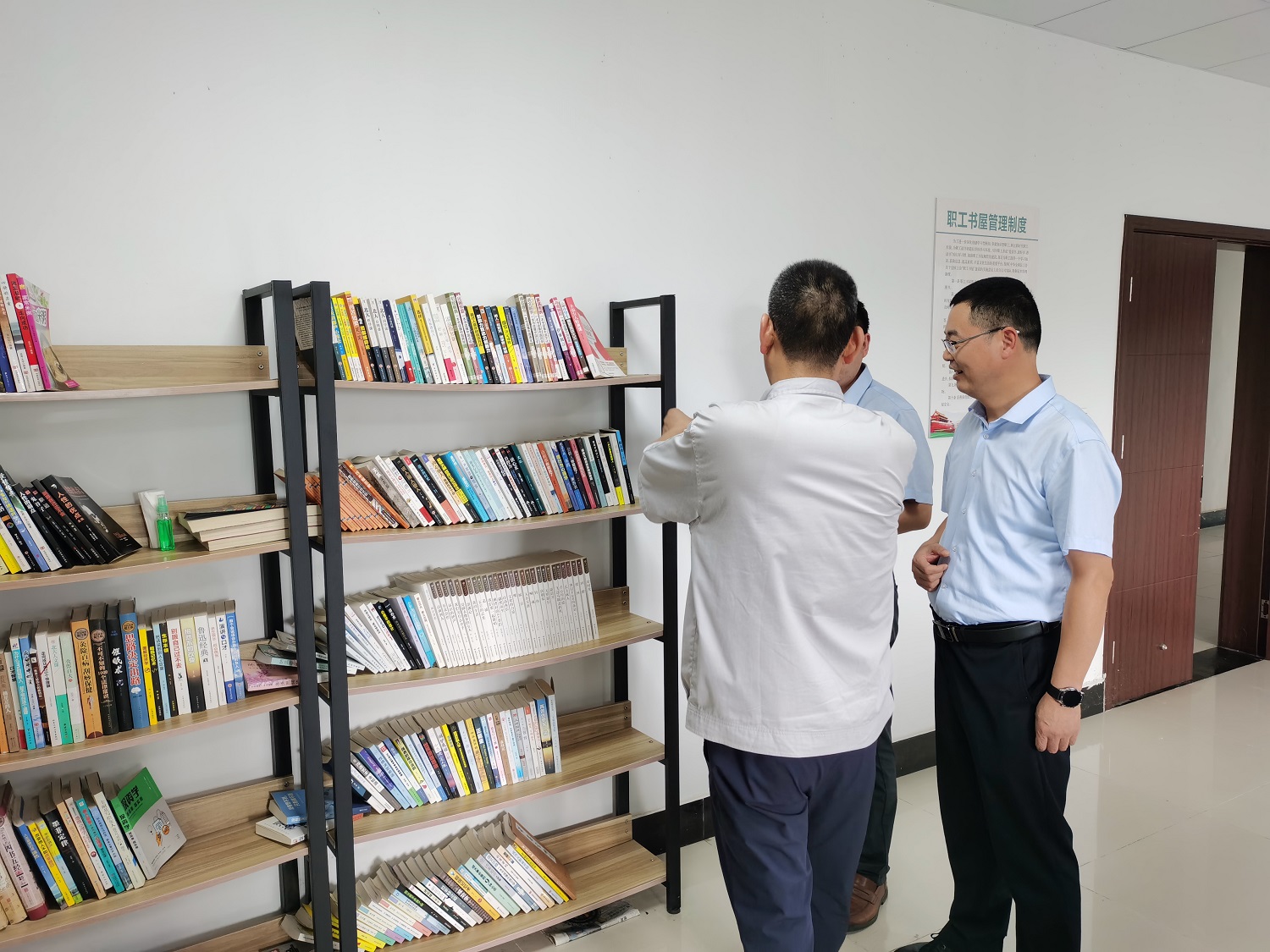 在實(shí)地參觀過程中,深入了解了書屋建設(shè)、布局、管理、圖書分類及更新、登記等具體方面的內(nèi)容,并就相關(guān)黨建、工會(huì)活動(dòng)開展情況與神特新材料黨支部副書記、工會(huì)主席袁忠等進(jìn)行了交流討論。