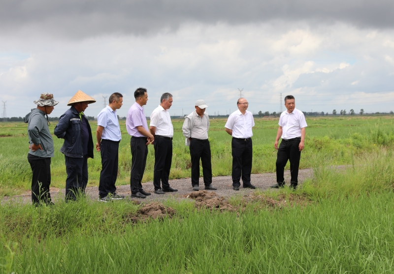 丁銳一行還到大新農場實地查看新品種水稻種植情況。(仲偉彬)