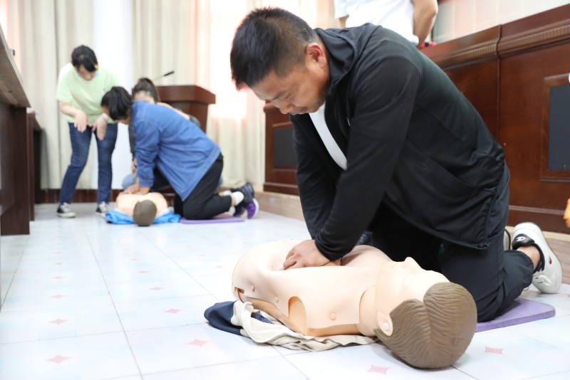 培訓(xùn)會上,掌曉慧主任強調(diào)了學(xué)習(xí)心肺復(fù)蘇術(shù)的重要性,具體講解了胸外心臟按壓、人工呼吸、AED除顫儀的使用及救助過程中需要注意的問題和經(jīng)常出現(xiàn)的錯誤。以模擬橡膠人為器具,現(xiàn)場演示并指導(dǎo)職工關(guān)于心肺按壓、人工呼吸和AED除顫儀的正確使用。