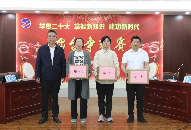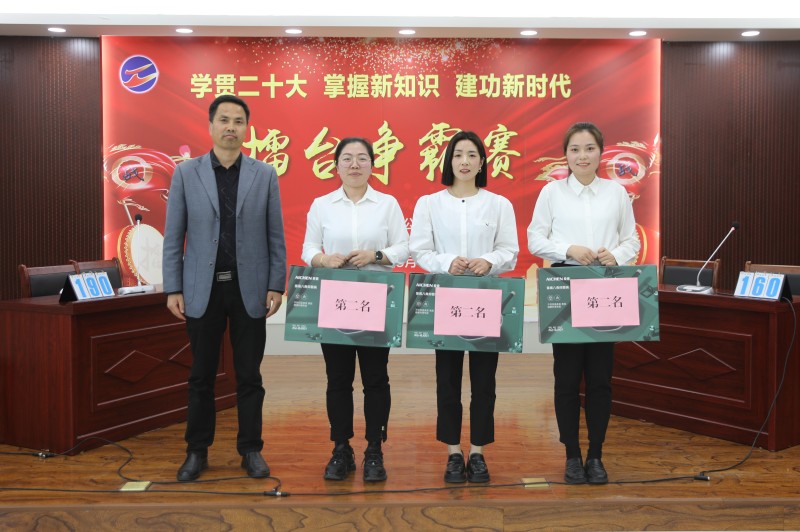 為全面貫徹落實(shí)黨的二十大精神,引導(dǎo)廣大職工學(xué)習(xí)新精神、領(lǐng)悟新思想、儲(chǔ)備新知識(shí),營造學(xué)思踐行的濃厚氛圍,5月9日下午,青口投資公司工會(huì)舉辦“學(xué)貫二十大 掌握新知識(shí) 建功新時(shí)代”擂臺(tái)爭(zhēng)霸賽。公司領(lǐng)導(dǎo)史祥平、梁永、朱文兵、楊青松出席活動(dòng)。來自公司的10支代表隊(duì)參加了比賽。