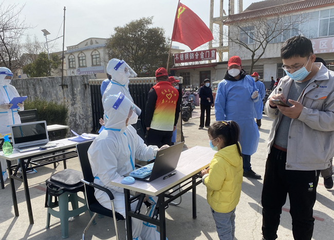 圖為黨員宋世園正引導居民做好核酸檢測準備工作