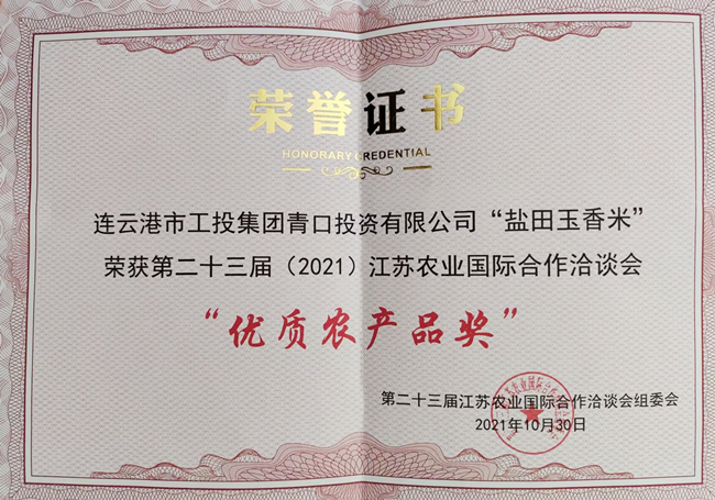 農(nóng)洽會(huì)上,“鹽田玉”大米憑借口感軟糯、營(yíng)養(yǎng)豐富的口碑優(yōu)勢(shì),再次得到大會(huì)和參展商的好評(píng),并在眾多農(nóng)產(chǎn)品中脫穎而出,榮獲第二十三屆江蘇農(nóng)業(yè)國(guó)際合作洽談會(huì)“優(yōu)質(zhì)農(nóng)產(chǎn)品獎(jiǎng)”。
