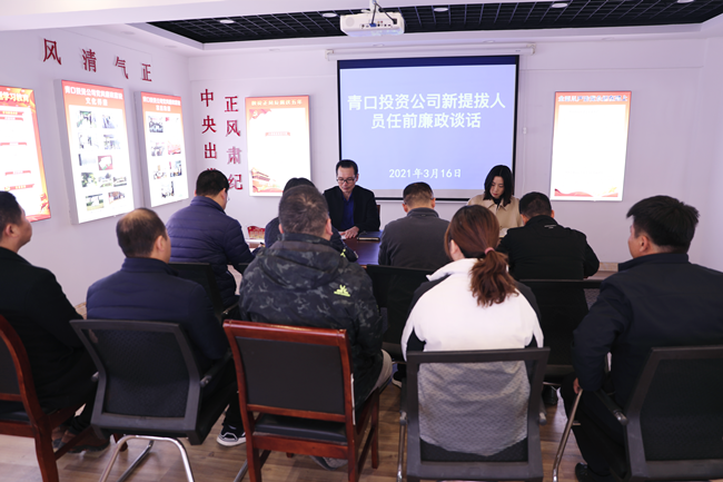 ? ?3月16日下午,青口投資公司紀(jì)委書(shū)記朱文兵對(duì)九名新提拔人員進(jìn)行任前集體談話,相關(guān)人員參加了此次會(huì)議。? ? ? ? ? ? ? ? ?
