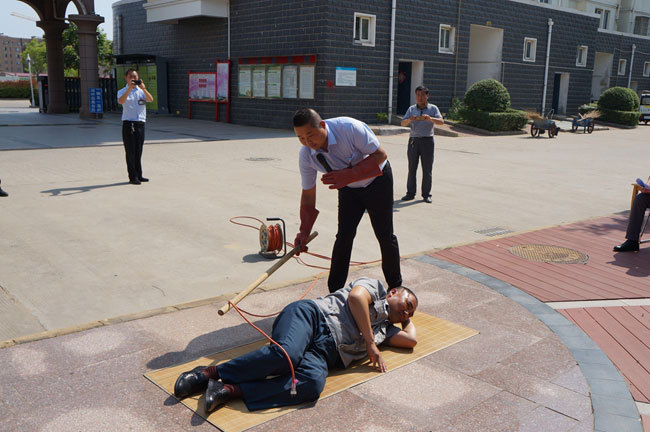 ? ? ? ? 為切實提高員工的安全防護(hù)意識,提升在應(yīng)急突發(fā)事件情況下快速反應(yīng)處置能力。 6月21日下午,在鹽場家園小區(qū)舉辦了青口投資公司觸電危險預(yù)案現(xiàn)場演練。公司安委會成員、各單位分管安全人員現(xiàn)場觀摩本次演練, 由泰祥公司組織實施并邀請供電公司現(xiàn)場指導(dǎo) 。