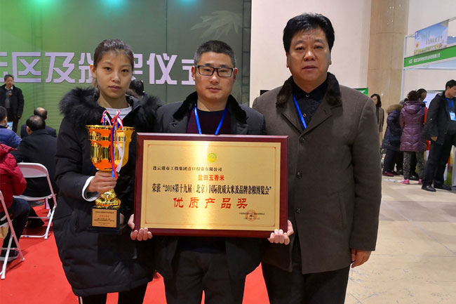 新年伊始,萬象更新,公司 “鹽田玉”大米再獲重量級(jí)榮譽(yù)。在 2018第十九屆(北京)國(guó)際優(yōu)質(zhì)大米及品牌雜糧博覽會(huì)上,我公司鹽田玉香米經(jīng)過產(chǎn)品品質(zhì)檢測(cè)、品嘗、營(yíng)養(yǎng)分析等程序?qū)徍?,完全符合評(píng)獎(jiǎng)要求,在600多家參展企業(yè)中脫穎而出,被授予“優(yōu)質(zhì)產(chǎn)品獎(jiǎng)”榮譽(yù)稱號(hào)。