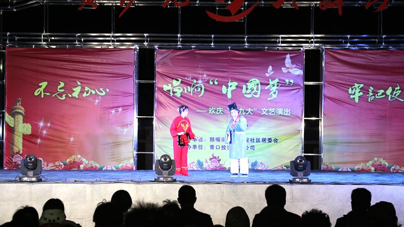 10 月 23 日 晚,猴嘴街道黃沙坨社區(qū)和青口公司聯(lián)合舉辦的以“不忘初心 牢記使命 唱響中國(guó)夢(mèng)”為主題的慶十九大文藝演出活動(dòng)在黃沙坨大舞臺(tái)舉辦,這是在秋收前,用豐富多彩的文娛方式慶祝十九大召開(kāi)。猴嘴街道黨工委副書(shū)記王新崗、公司黨委副書(shū)記、副總經(jīng)理史祥平現(xiàn)場(chǎng)觀(guān)看了演出。