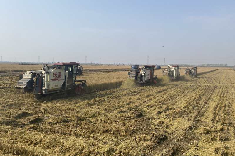 雨后初晴,大新農(nóng)場搶抓晴好天時,科學(xué)統(tǒng)籌,減損提速,近20臺收割機“盡銳出戰(zhàn)”,紛紛下田搶收水稻,切實保障機收作業(yè)不停歇,搶收顆粒歸倉。 (王璐)