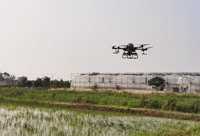 夏至水門開(kāi),接連幾天的暴風(fēng)雨,田間道路泥濘。6月28日下午,天氣剛剛轉(zhuǎn)晴,倉(cāng)儲(chǔ)中心抓住有利天時(shí),緊爭(zhēng)農(nóng)務(wù),搶抓農(nóng)時(shí)節(jié)點(diǎn),采用無(wú)人機(jī)為水稻田有序開(kāi)展追肥工作。(姜姝妍)