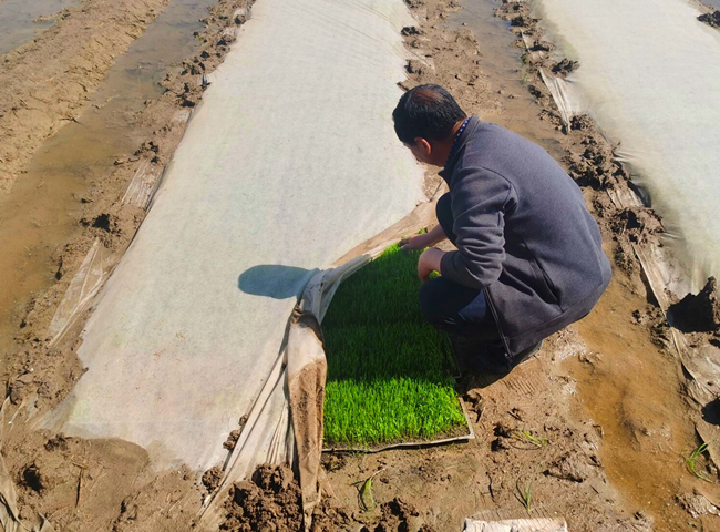 近期,大新農(nóng)場組織對自營農(nóng)田機(jī)插秧集中檢查,目前秧苗生長正常已達(dá)到1.5-2葉秧齡。由于天氣良好溫度持續(xù)上升,預(yù)計5月下旬即可揭開無紡布進(jìn)行秧苗管理,6月上旬開始插秧。(劉 楊)