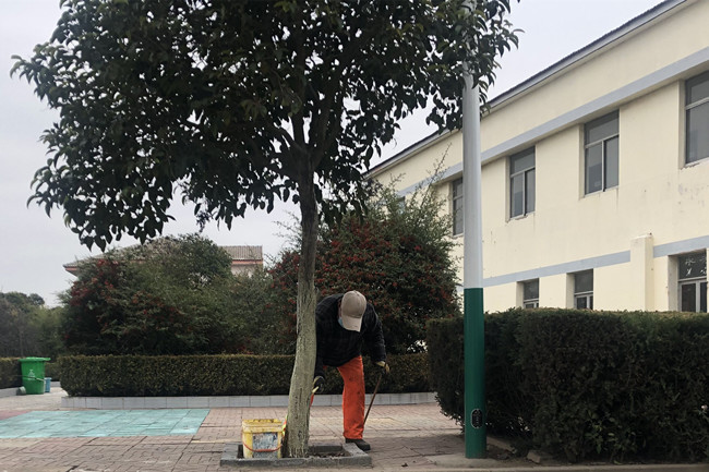 隨著氣溫的逐漸下降,場區(qū)植物開始進入冬季生長休眠期,為強化綠化養(yǎng)護管理,全力確保綠化植物安全越冬,近日,冬季樹木刷白防護工作全面啟動。服務(wù)中心利用天氣晴好時機對場區(qū)區(qū)域內(nèi)的樹木進行涂白防護。樹干刷一層“涂白劑”是入冬前為樹木進行養(yǎng)護管理的一項重要內(nèi)容,不僅可以減少水分蒸發(fā),還可以增強樹木的防凍能力、防御病蟲害的滋生,具有殺菌的作用,為樹木來年萌發(fā)打基礎(chǔ)。