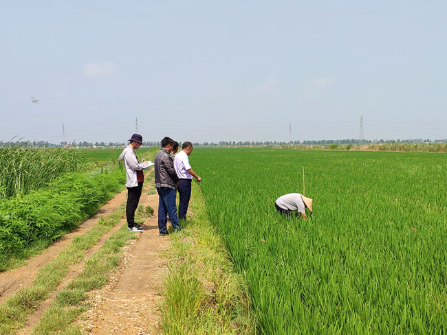 針對(duì)近期高溫高濕天氣,為做好水稻生產(chǎn)管理中期生產(chǎn)工作, 7月25日,農(nóng)場(chǎng)管理人員和農(nóng)技師頂著烈日深入田間地頭,對(duì)水稻基本苗的苗情苗量、病蟲(chóng)害情況、中期水漿管理逐條田組進(jìn)行水稻中期生產(chǎn)檢查,對(duì)下一步的水漿管理和綜合防治提出指導(dǎo)意見(jiàn),要求適時(shí)擱田,并于7月底至8月上旬進(jìn)行一次綜合防治。 (陳 琛)