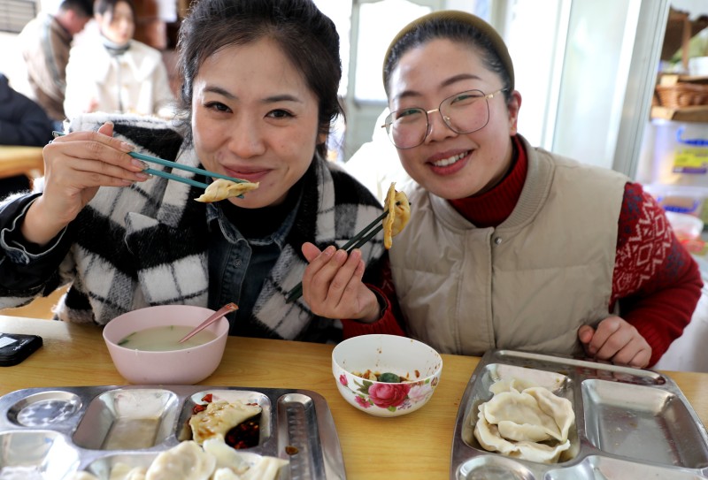 ? ? ? ?活動(dòng)現(xiàn)場(chǎng),大家有說(shuō)有笑,默契配合,有的揉面團(tuán)、有的拌餃餡、有的搟面皮、有的包餃子,大家互相切磋著包餃子的技巧,好不熱鬧,包出來(lái)的餃子也是形態(tài)各異,有元寶狀、小船狀、三角狀,還有獨(dú)具特色的花邊餃,女職工們紛紛拿著自己的勞動(dòng)“成果”,擺在手心互相比較著餃子的形狀,隨著一雙雙靈巧的小手來(lái)回舞動(dòng)著,在一片喜慶、溫馨的氛圍中,一個(gè)個(gè)口味不一的餃子就展現(xiàn)在大家面前。當(dāng)一盤(pán)盤(pán)熱氣騰騰的餃子端上桌,食堂瞬間香氣四溢,吃著自己親手包的餃子,每個(gè)人的臉上無(wú)不洋溢著滿足、幸福的笑容。