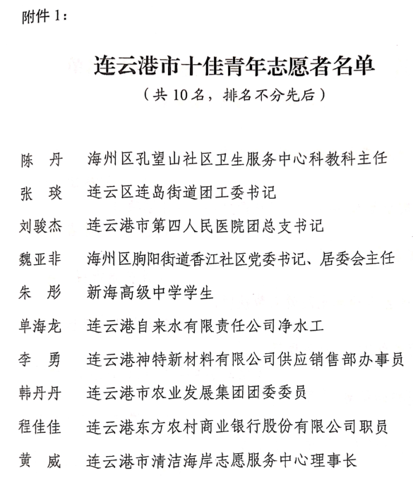 近日,公司員工李勇被共青團(tuán)連云港市委、連云港市文明辦、連云港市志愿者協(xié)會授予“連云港市十佳青年志愿者”稱號。這是對其“無償獻(xiàn)血,大愛無疆”的肯定,也是對其一種激勵。 (神特宣)