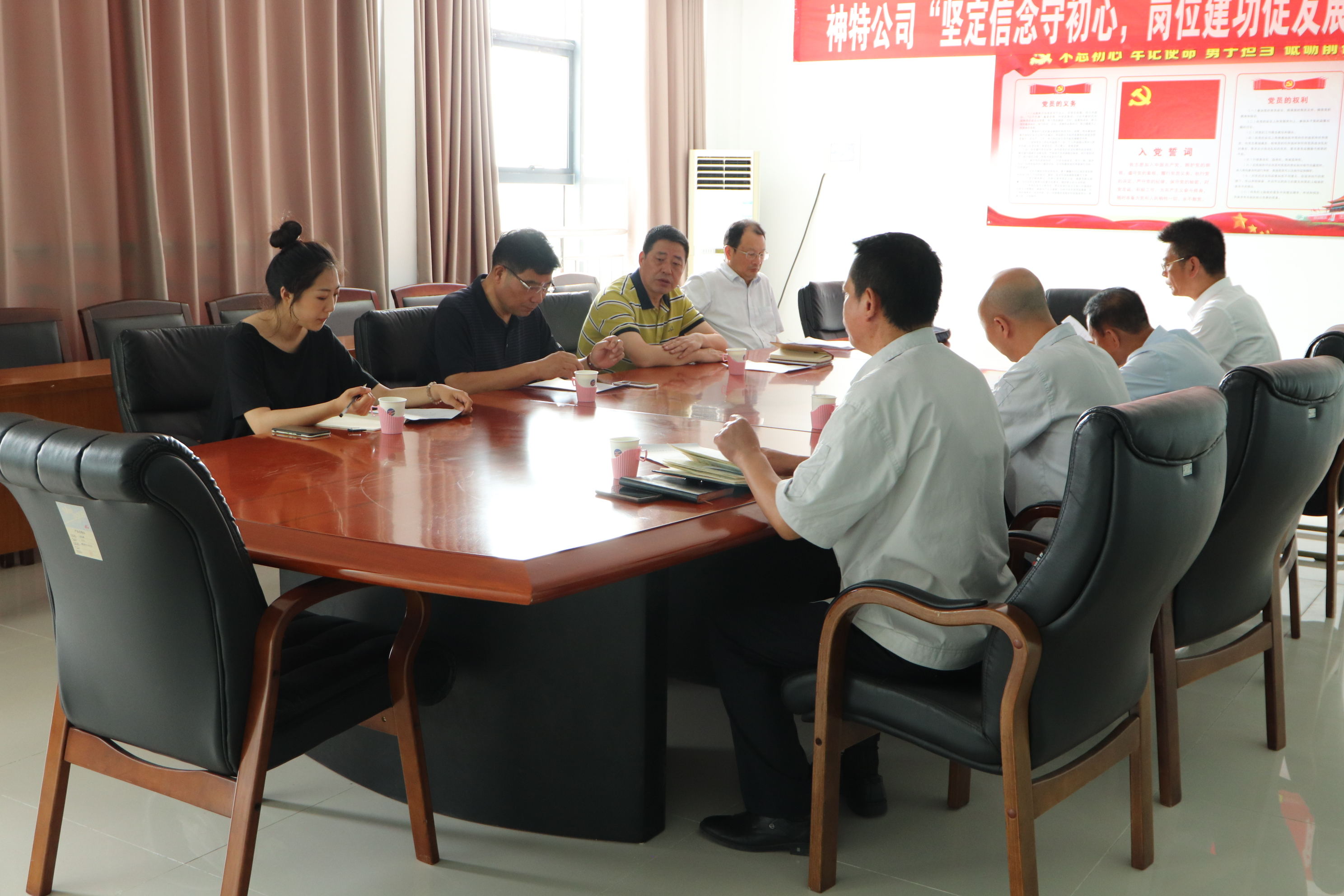 7月12日上午,集團公司黨群工作部部長江舜軍率調(diào)研組一行,到我公司調(diào)研上半年黨建重點工作落實情況,公司黨支部書記鄒德兵、總經(jīng)理韓立新、黨支部副書記袁忠陪同調(diào)研。