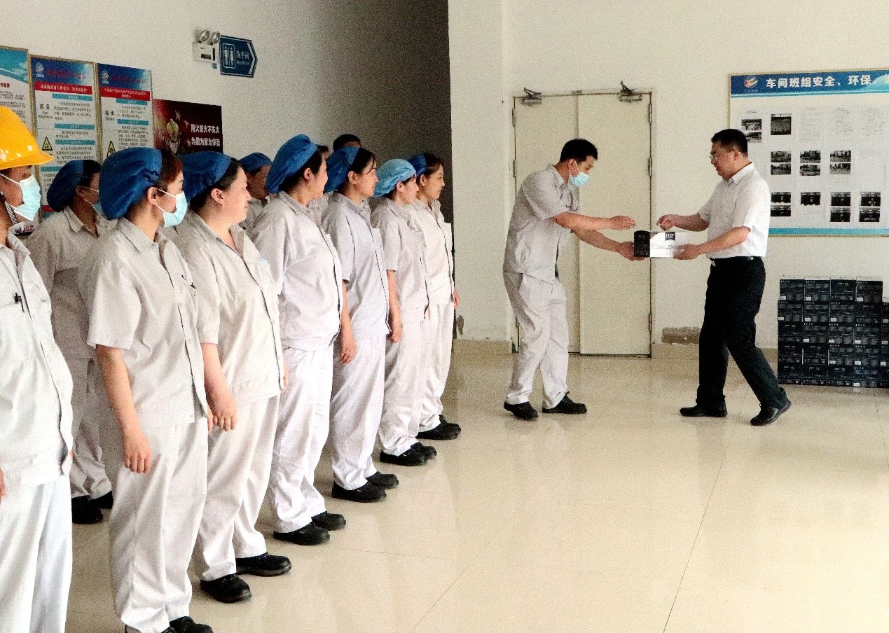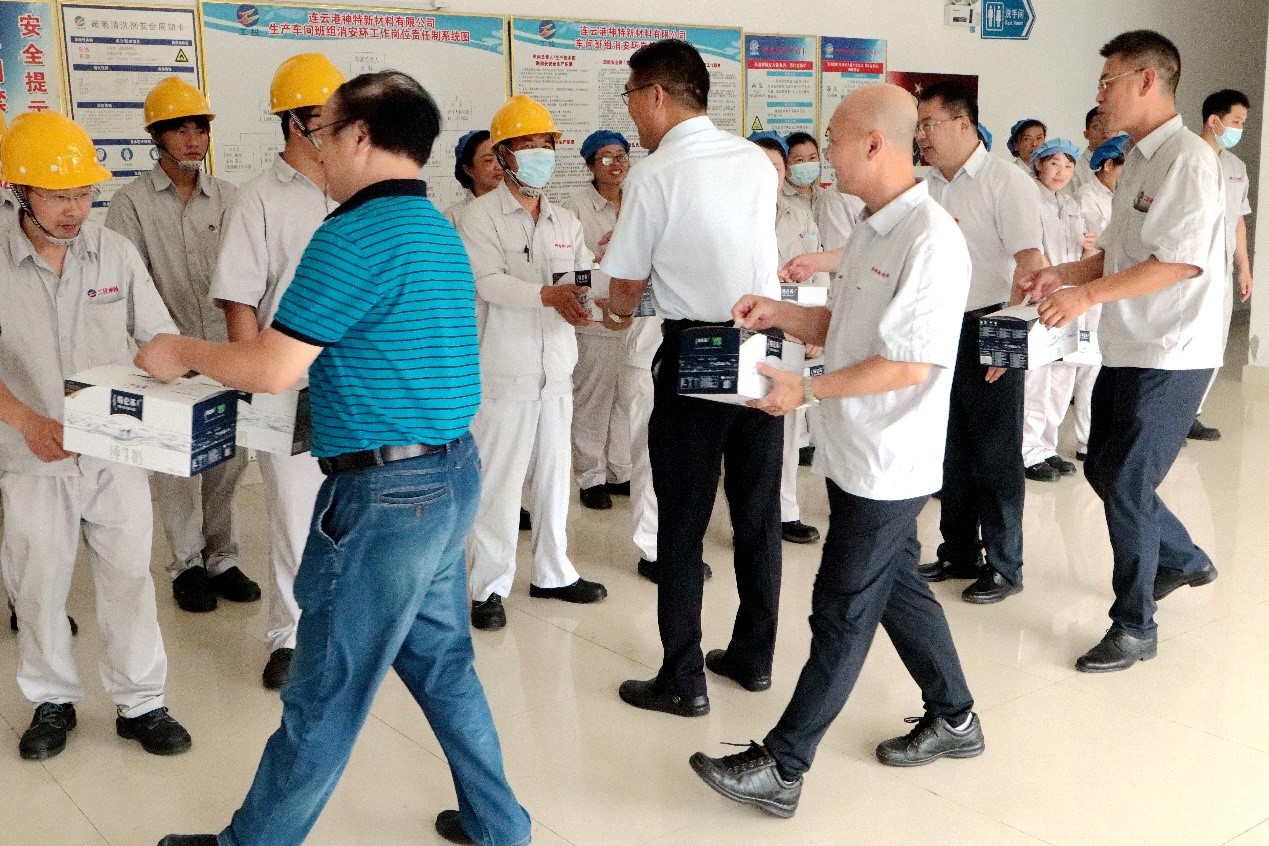 7月28日上午,集團(tuán)公司黨委副書記戴鴻鳴、工會(huì)主席劉承志一行到公司慰問(wèn)生產(chǎn)一線員工,為生產(chǎn)一線員工送來(lái)牛奶、綠豆、白糖、大米等防暑降溫慰問(wèn)品。公司董事長(zhǎng)張斌、總經(jīng)理韓立新等領(lǐng)導(dǎo)陪同。