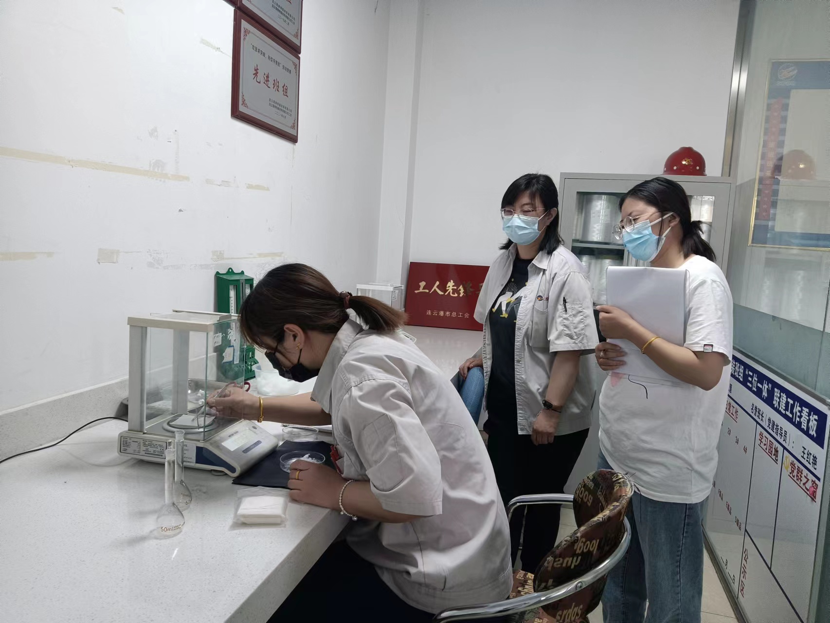 5月26日上午9點(diǎn),化驗(yàn)班組準(zhǔn)時(shí)開(kāi)始比賽,選手們聚精會(huì)神的調(diào)整天平水平、置零、稱(chēng)量蠟紙、置零、再稱(chēng)量?jī)瞿z絲、放入容量瓶,一套操作如行云流水般一氣呵成。最終,吳珊珊同志在非常接近的比分中以2分53秒86險(xiǎn)勝!