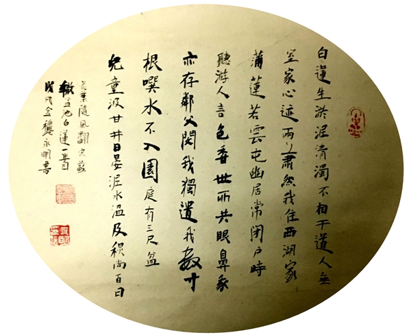 職工陳永明書法作品《盆池白蓮》